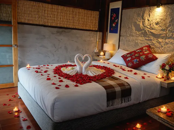 สัมผัสประสบการณ์การพักผ่อนระดับ superior room ที่รอบล้อมเสน่ห์แบบโมเดิร์นแบบ Modern Japanese เข้ากับความอบอุ่นที่เรียบง่ายทรายโดดเด่นและแตกต่างก้าวข้ามกรอบห้องนอนแบบเดิมๆด้วยการออกแบบที่เน้น texture and tone โดยเลือกใช้ผนังปูนขัดมันตัดกับผนังหินธรรมชาติ stone Accent Wall โดยเลือกใช้ผนังปูนตัดกับผนังหินธรรมชาติให้ความรู้สึกมั่นคงและสงบเสริมความละมุนด้วยงานไม้สีเข้มและโคมไฟ warm light ที่ช่วยสร้างบรรยากาศแห่งการพักผ่อนอย่างแท้จริง